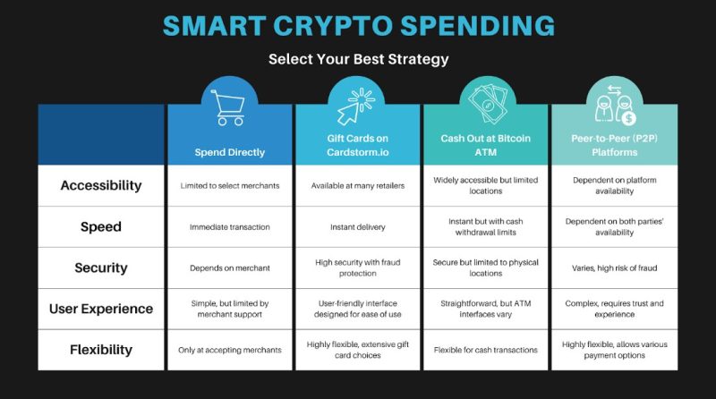 Choosing the right way to spend your crypto depends on your needs and priorities: