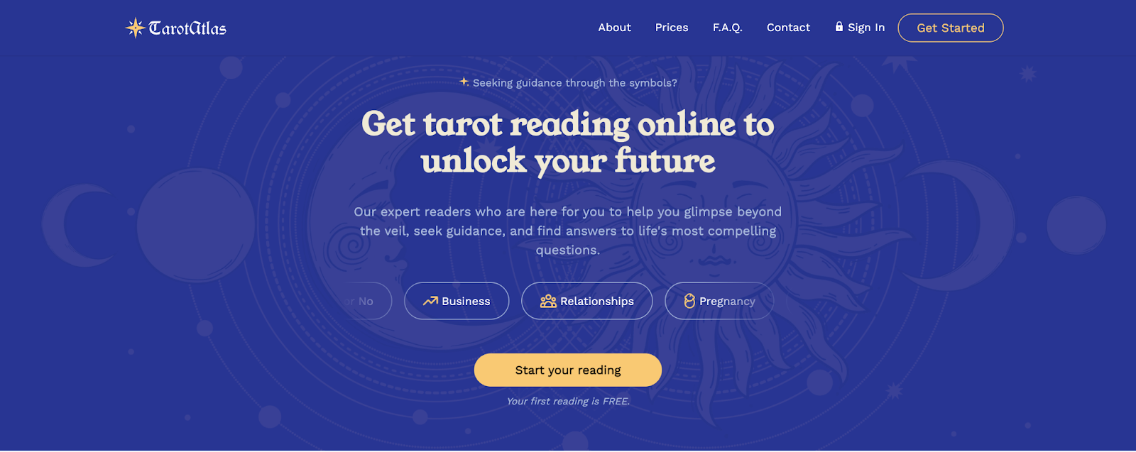 Intuitive navigation makes browsing the TarotAtlas web haven a pleasure. Every section is labeled clearly, from About and Prices to F.A.Q., Contact, etc. Booking a session is easy while on the go since the mobile version is just as polished. Even if it’s your first time booking an appointment with a spiritual reader, you don’t get overwhelmed – all important sections are on the main page.
