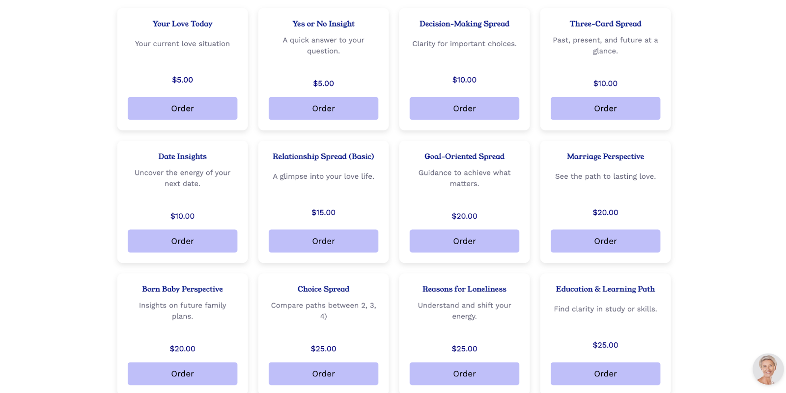 The variety of services offered by the company is pretty impressive. Beyond traditional reading sessions, you’re welcome to approach online readers for: