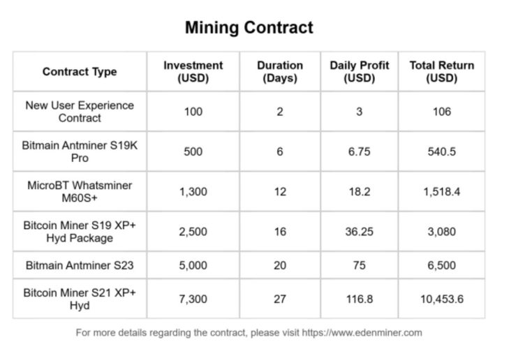 Eden Miner’s appreciation contracts are allocation plans developed through precise calculation. Furthermore, you enjoy generous startup benefits upon registration.