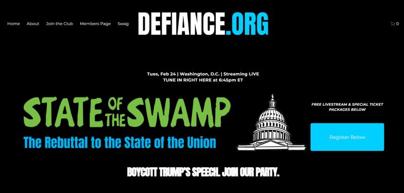State of the Swamp (7:00 p.m. to 11:00 p.m. ET): Free livestream at DEFIANCE.org/sotu