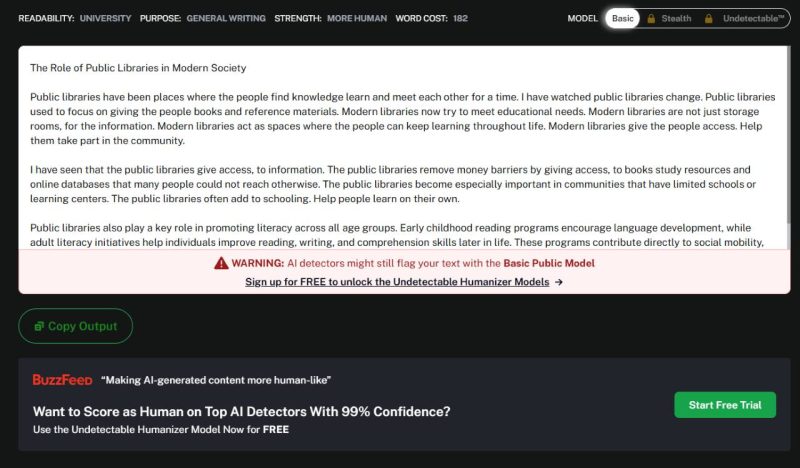 Now, we will show you the results and present twelve AI essay humanizer options that are commonly used to refine academic drafts created with AI assistance.